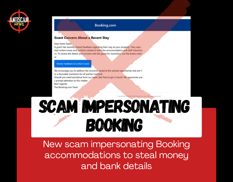 At AntiScamNews we denounce a new scam that impersonates accommodations on Booking to steal money and bank details.